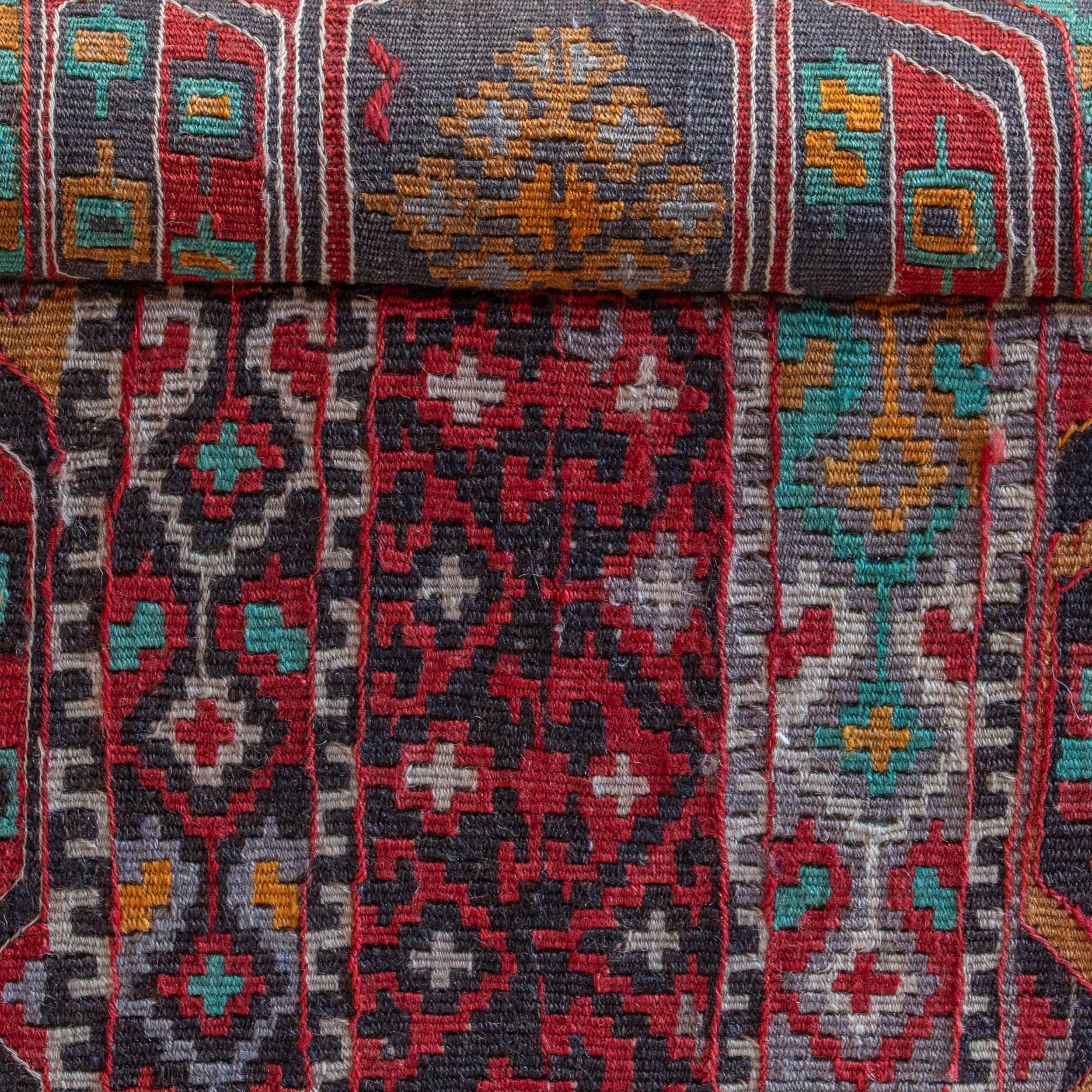 Salvaged Kilim rugs are often used to produce these pieces, particularly old Turkish Kilim rugs, which often feature intricate motifs with symbolic meanings. Vegetable-dyed wool is a beautiful natural fibre that generally contains high levels of lanolin, making it very practical. Kelim is woven using hand-dyed wool in both the warp and the weft. The patterns produced are often identified by the region in which they are made, and the designs are passed down through generations from mother to daughter.
