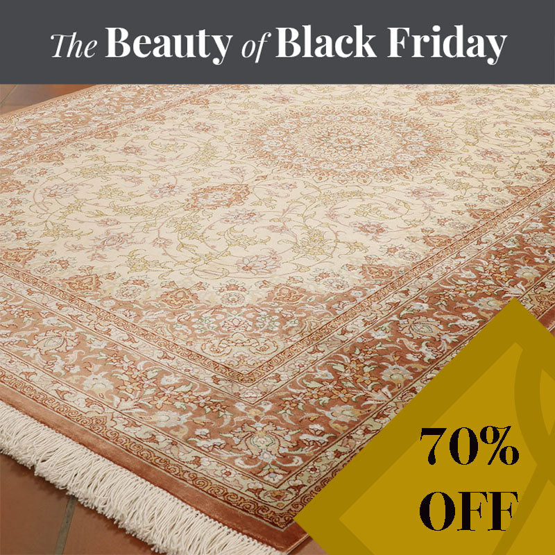 Please remember that the first two images are of the same rug, photographed from opposite ends. Silk rugs, in particular, will show an enormous colour difference from either end.
