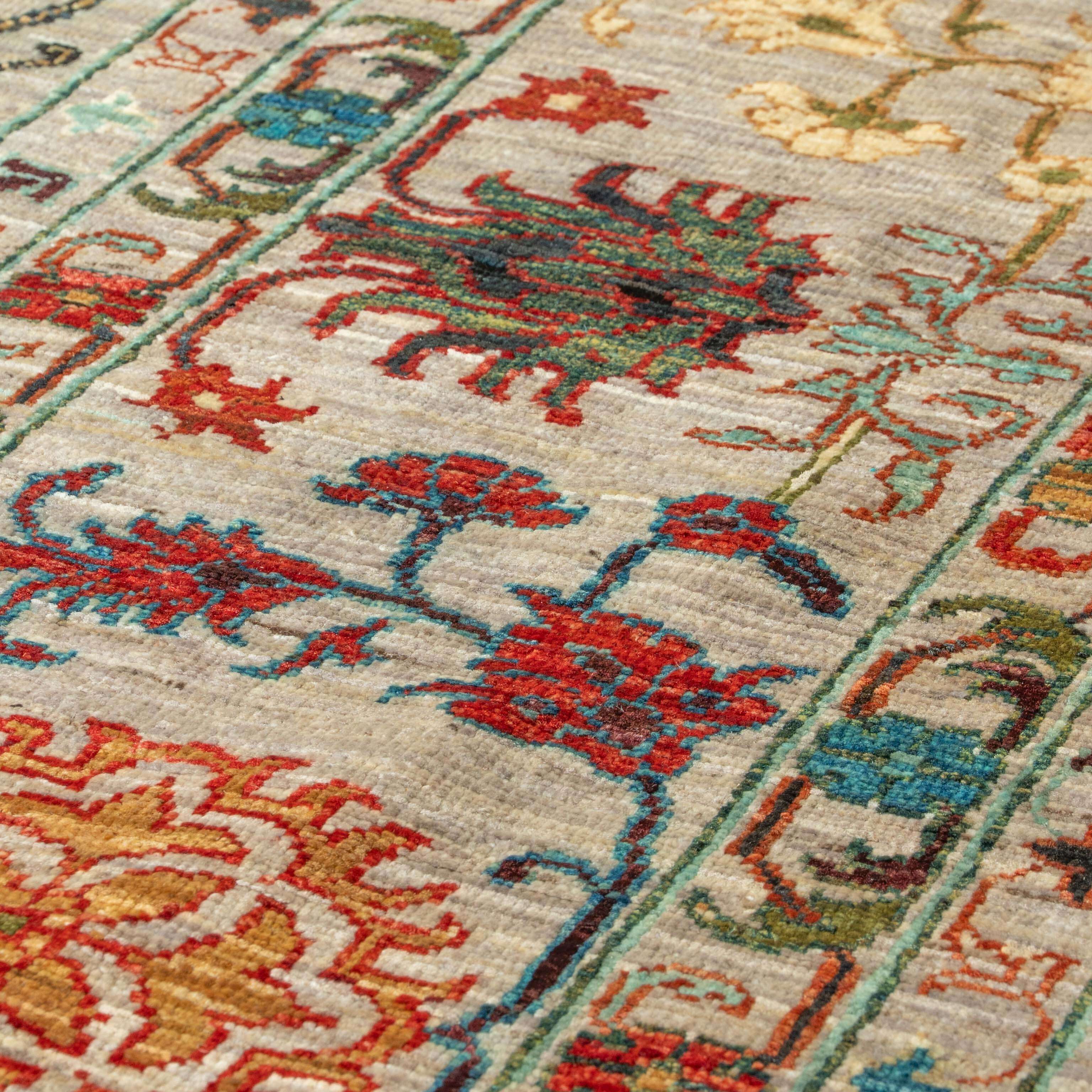 Today, in Afghanistan, there is very little production of exceptionally fine Afghan rugs made to replicate the fineness of the originals. However, the wonderful colours that they have chosen give it a more modern feel. It is handmade using vegetable-dyed handspun wool onto a cotton foundation. This truly is a stunning rug and a firm favourite with all of us at Jennings Rugs.
