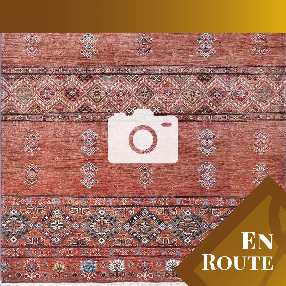 You can buy this handmade carpet before it arrives in our Tewkesbury showroom. The rug has not yet been received into our stock at Tewkesbury and has yet to be photographed at the showroom. Although the images may not be as good as our normal images, they are photographs of the finished rug. Once the carpet has been transferred from our warehouse, we will rephotograph it. This handmade Afghan Kharjeen rug is crafted in northwest Afghanistan by skilled artisan weavers who preserve traditional techniques passed down through generations. Using vegetable-dyed, handspun wool, the rug features a warm terracotta background, with...