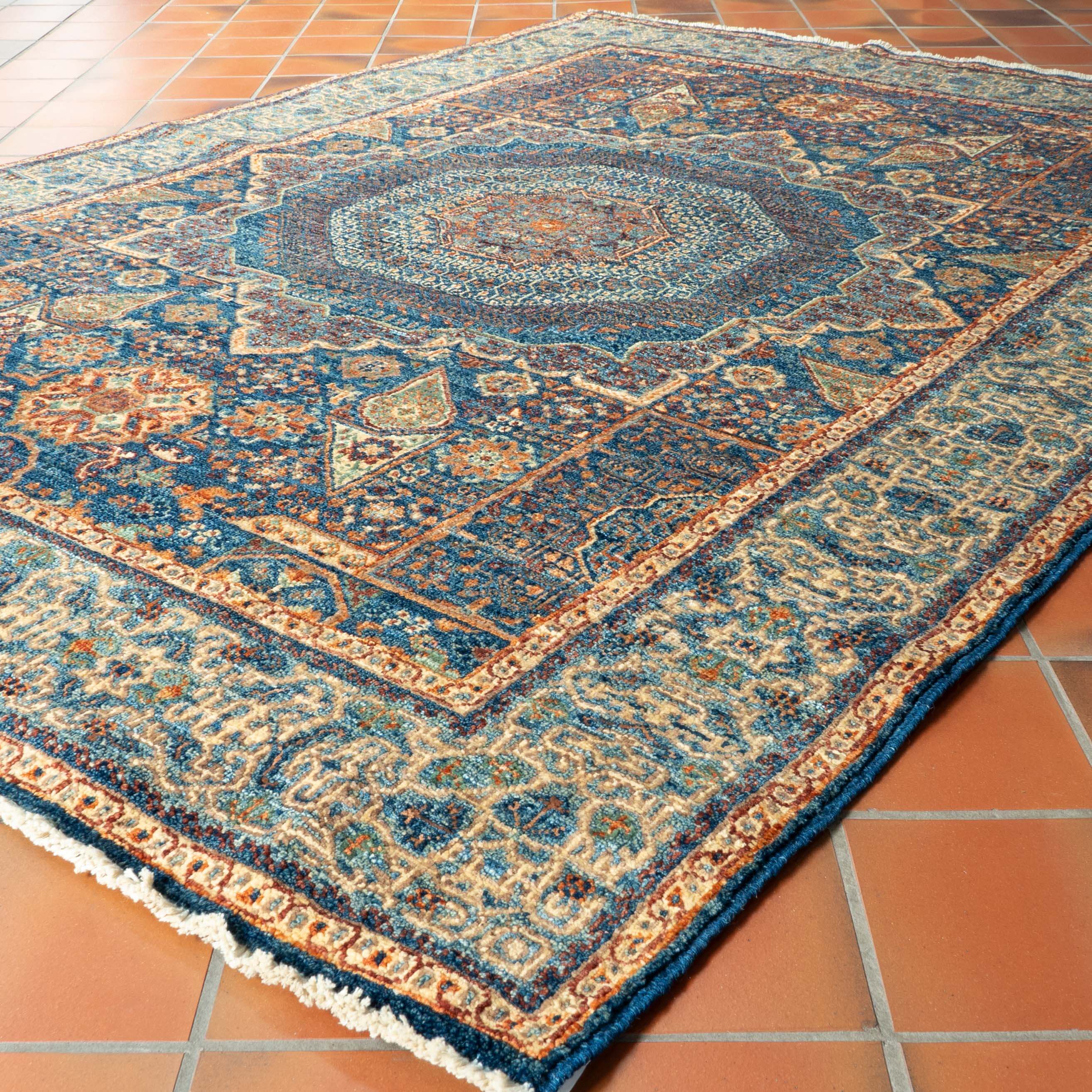 Indulge in the beauty of our handmade Afghan Mamluk rug. Crafted in north-west Afghanistan using traditional techniques passed down for generations, this practical and durable piece is part of a cottage industry. Handspun vegetable-dyed wool in a gentle colour palette of blues, cream, and tan creates a thick, dense pile—a handsome addition to any space.  Please click the hyperlinks in gold if you are interested in additional information. Mamluk's designs are simply stunning. They often feature large medallions with intersecting compartments, a design element that has become increasingly common in modern Oriental carpets and rugs.  The history of these ancient Egyptian...