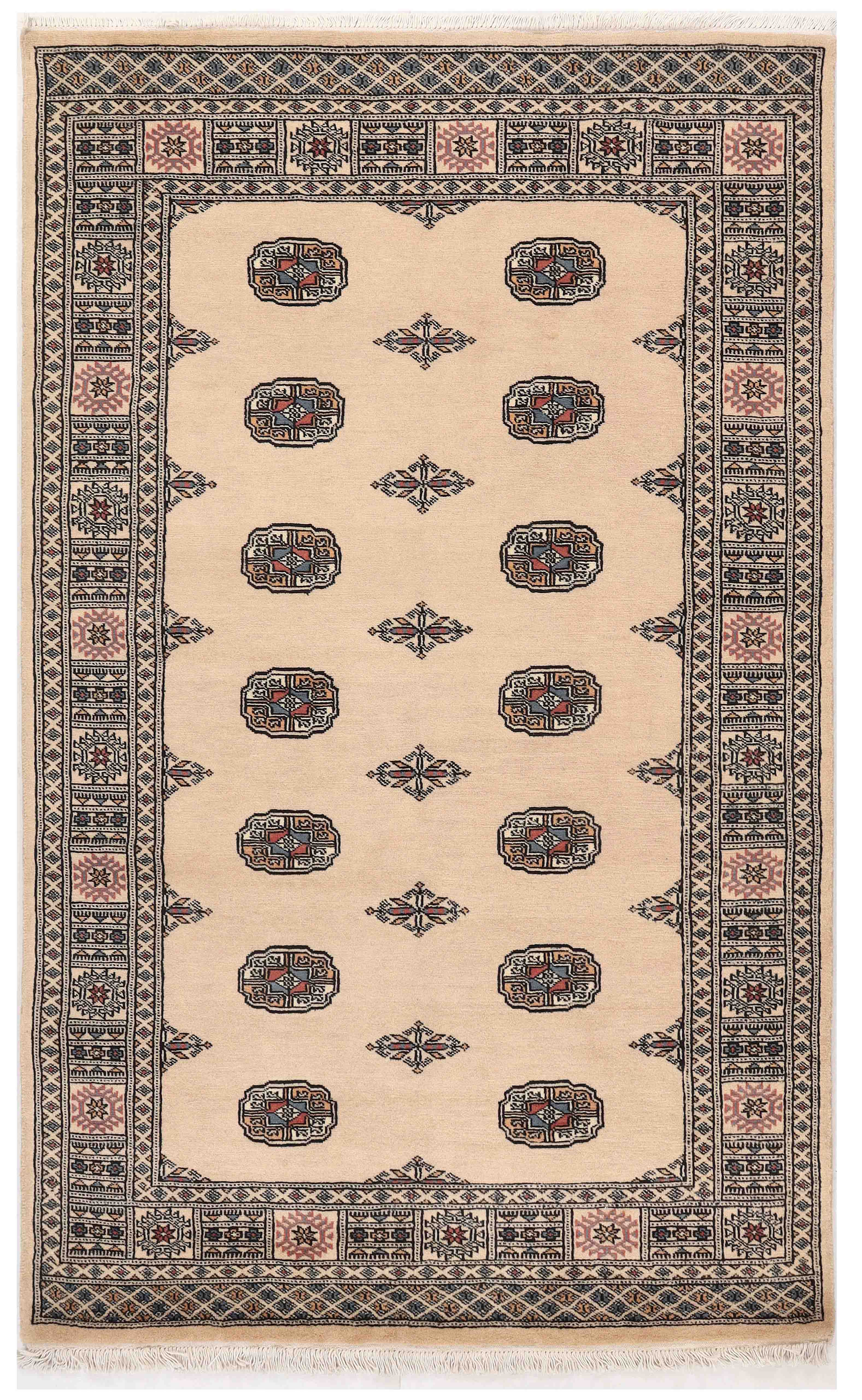The well-known Bokhara design originates from Uzbekistan, where the nomadic Turkoman tribespeople first took their rugs to be sold. The repetitive octagonal motif, known as a "gul" (Persian for "rose"), is a characteristic feature of Bokhara rugs. Today, Pakistani people weave this design in a wide range of colours and sizes.