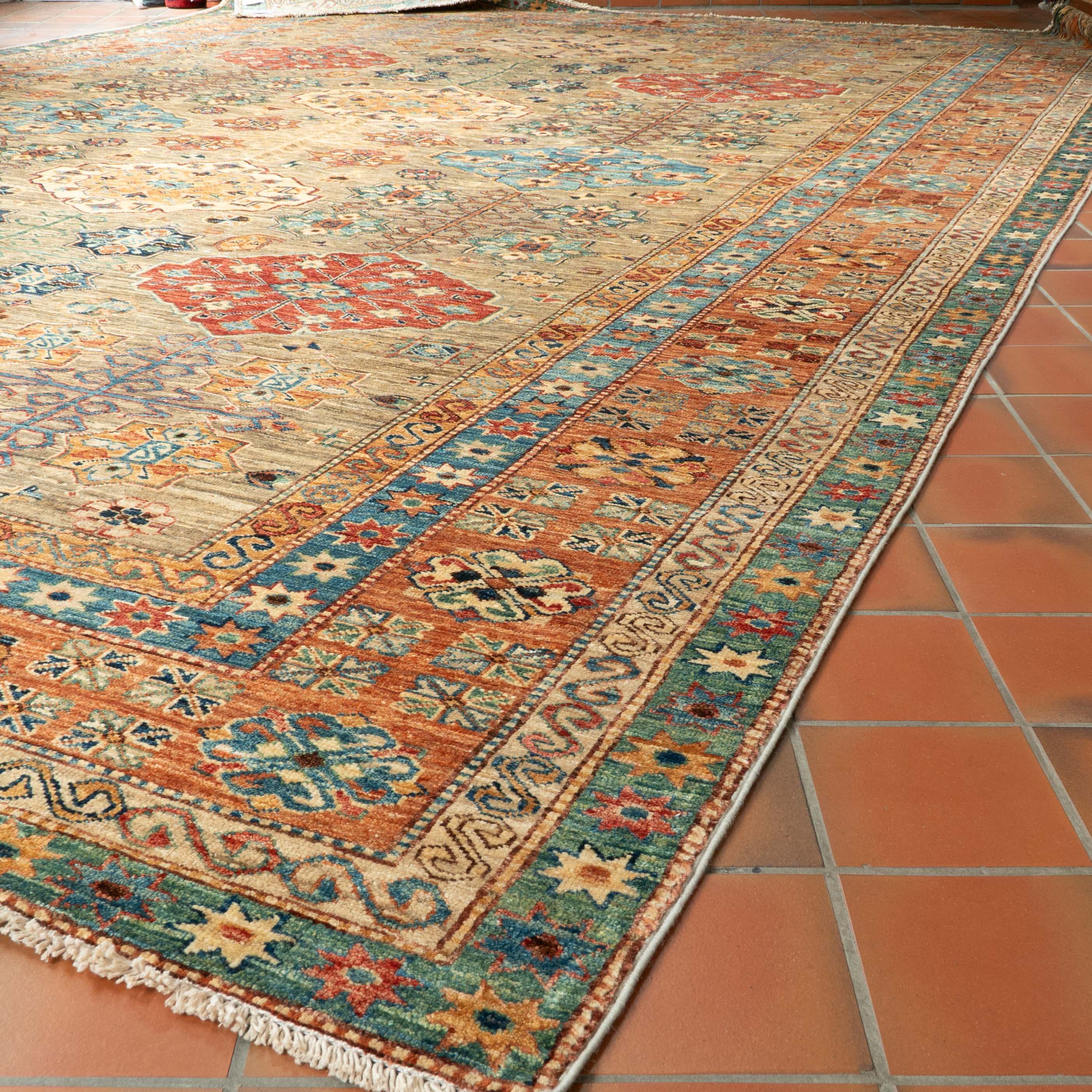 This exceptionally fine quality Afghan Kazak carpet represents generations of weaving mastery, crafted by skilled artisans in north-west Afghanistan's cottage industry. Each piece showcases traditional geometric patterns rendered in beautifully muted tones, combining timeless Caucasian design with authentic heritage craftsmanship. Built to withstand daily wear whilst maintaining its refined aesthetic, this fine carpet brings enduring elegance and cultural authenticity to any interior. A remarkable investment in handmade artistry and practical luxury.