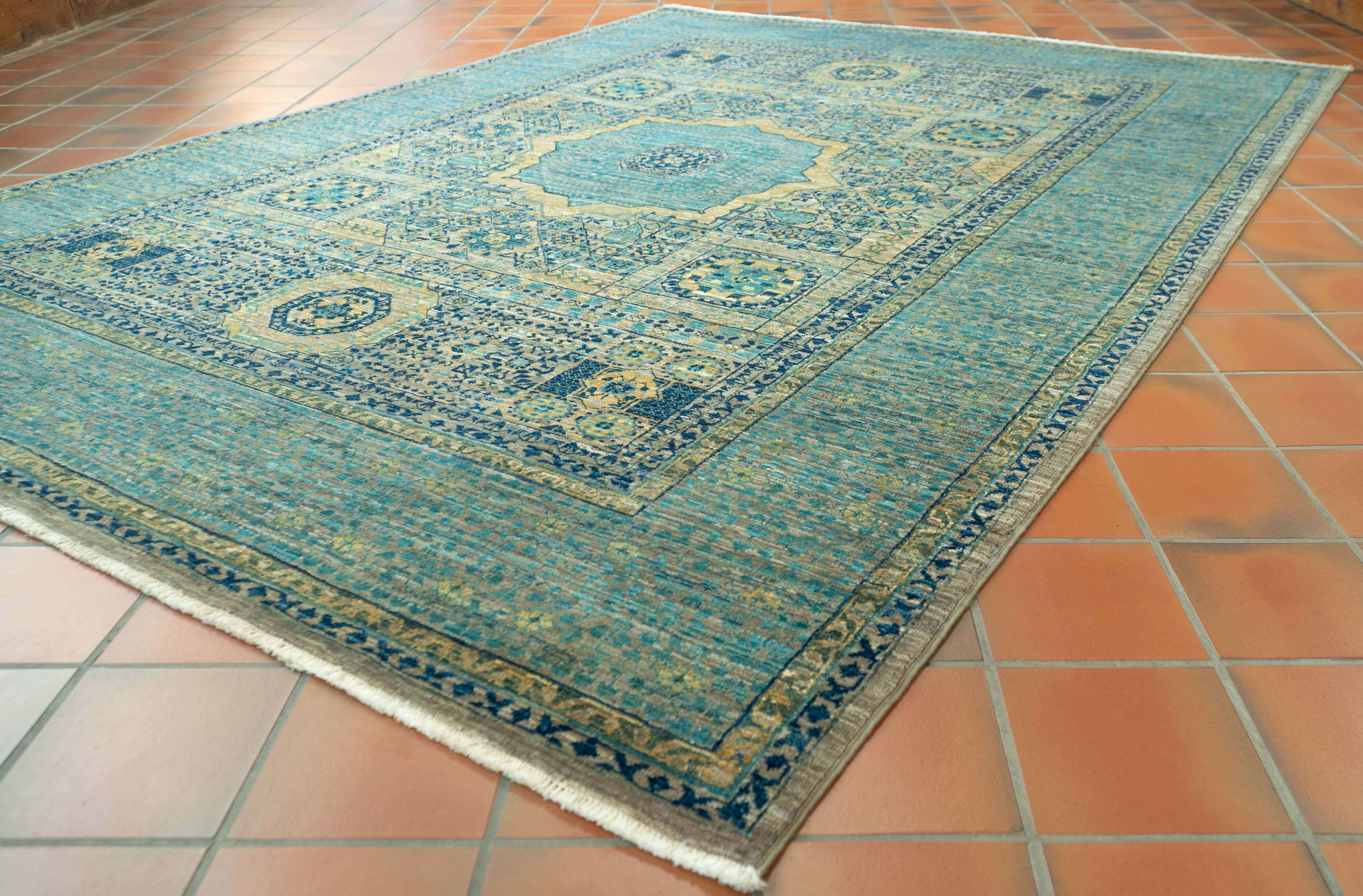 The history of these ancient Egyptian carpet designs could be traced to the 'Mamluk Dynasty' around 1250; these Turkic descendants established a thriving carpet industry in Cairo in the 15th century. In recent years, many Afghan weavers have been interested in traditional designs such as Mamluk, which they reinterpret, paying particular attention to new colours not traditionally used. As you might expect, these pieces are handmade, often using traditional vegetable dyes on cotton foundations. The final finishing process, such as surface clipping and herbal washing, is generally undertaken in Pakistan. The Afghan Mamluk carpets at Jennings Rugs are amongst the most prized pieces, with a level of detail that often surpasses that of Persian (Iranian) Oriental carpets. The fine weave and beautiful wool make these pieces very desirable.