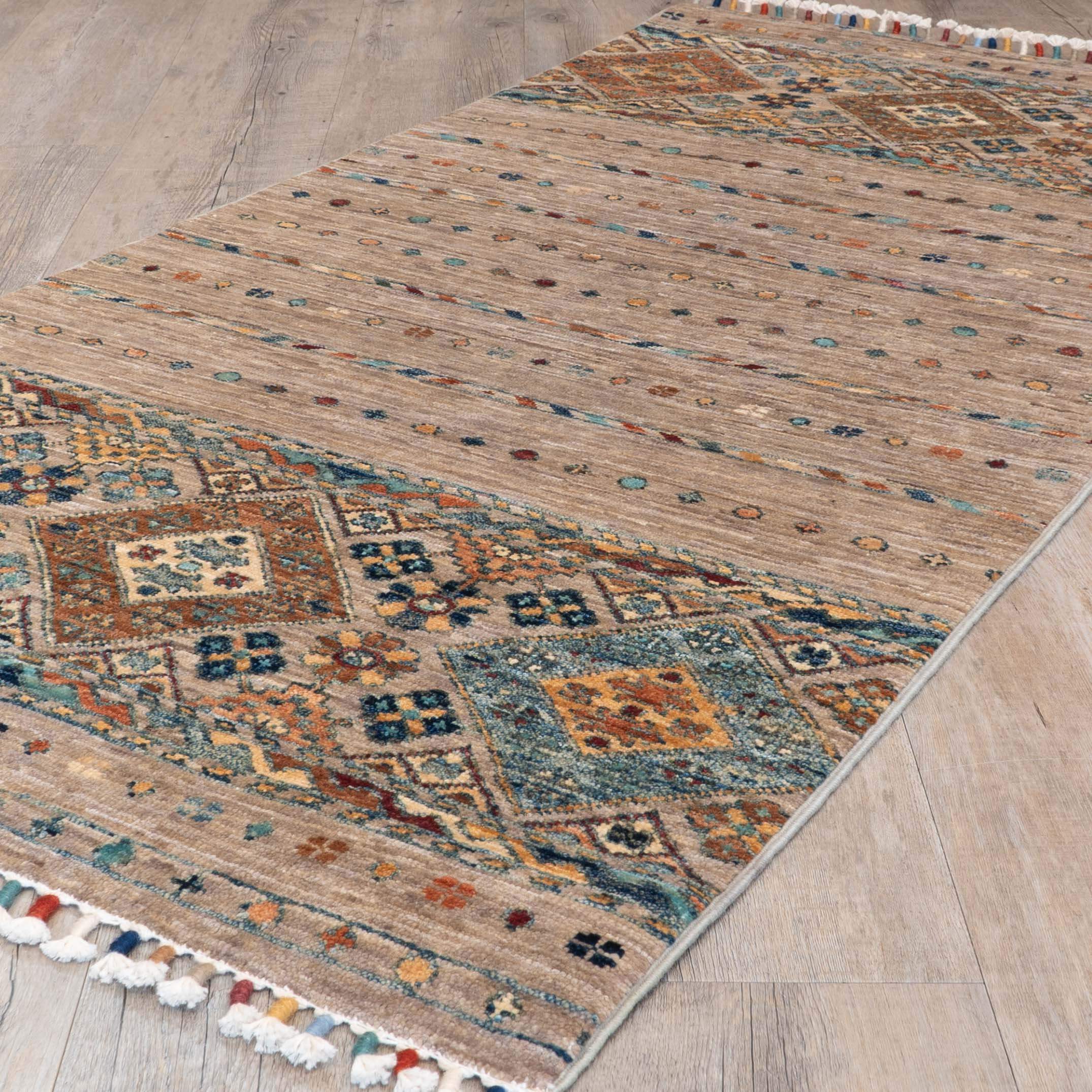 Experience the beauty of tradition with this fine quality Afghan Samarkand runner, meticulously handmade by skilled artisan weavers in north-west Afghanistan. Crafted within a cottage industry, it reflects generations of expertise through handspun, vegetable-dyed wool. Combining a practical, hardwearing construction with a gentle blend of traditional and contemporary design, this runner offers both enduring quality and timeless elegance. Its subtle mix of colours enhances any sophisticated interior with warmth and character.