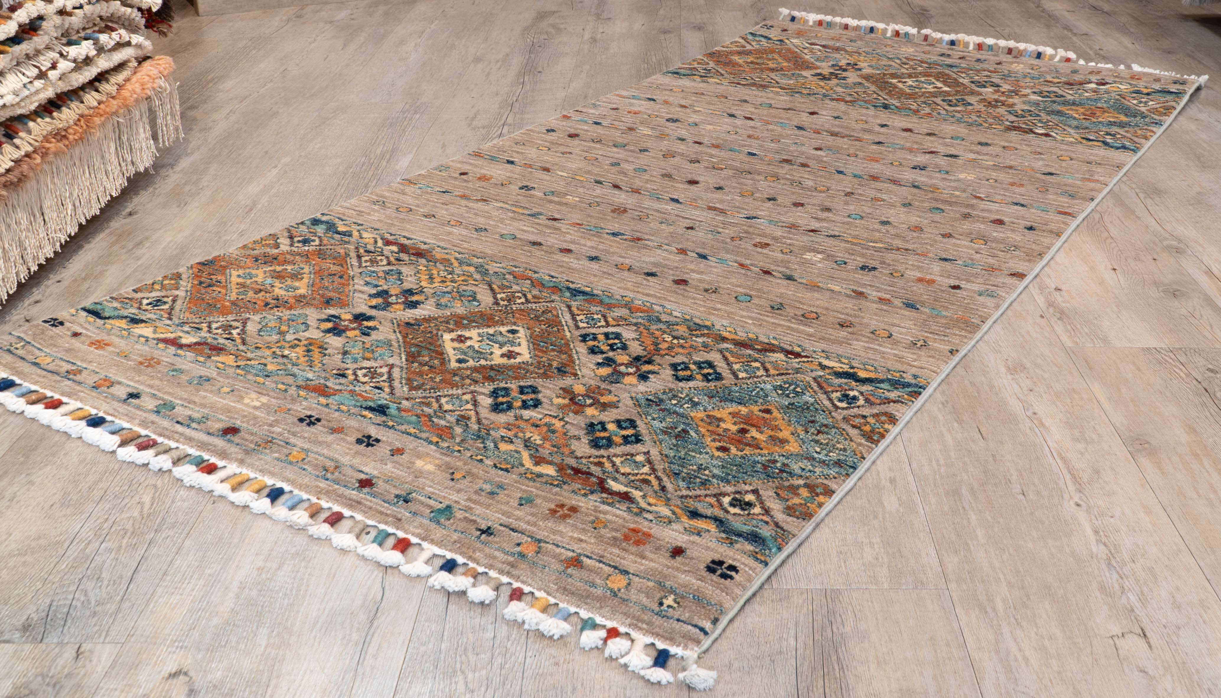 Hand-knotted Afghan Samarkand rugs and carpets are a relatively new production for us. We always look for something different or unusual, which certainly ticks that box. These rugs make a striking statement with their beautiful colours and the mixture of traditional and modern design. Samarkand rugs have been made recently in northwest Afghanistan, and the name has been given to their unique design. In Uzbekistan, Samarkand is as famous as Bukhara for its role on the Silk Road, which linked China with the West. We hope you also like this fascinating, colourful carpet as much as we do.