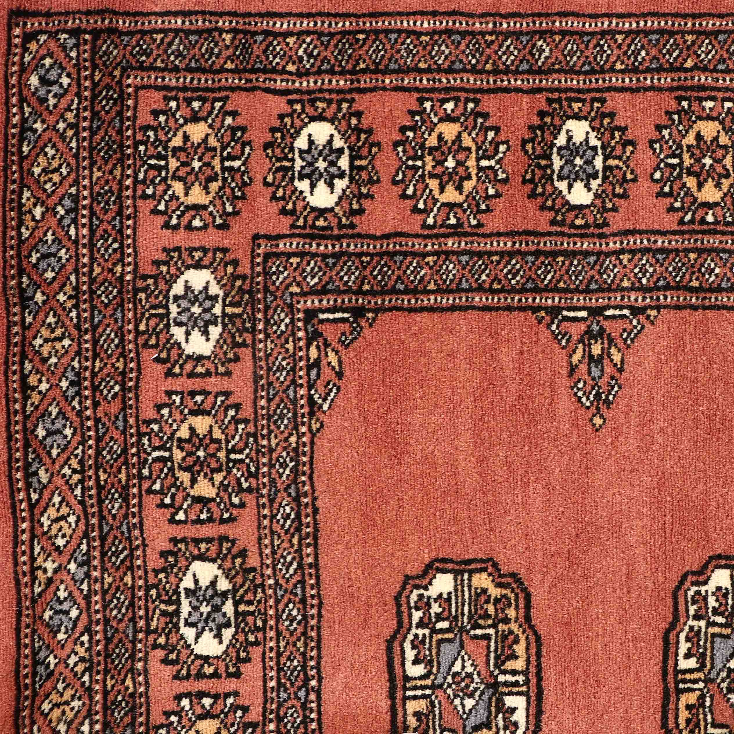 This Pakistan Bokhara rug is finely knotted in a traditional design using lovely, soft, silky wool. The Bokhara rugs are always made with a wool pile, but unfortunately, some people try to pass them off as silk. Handmade Bokhara rugs are incredibly good value.