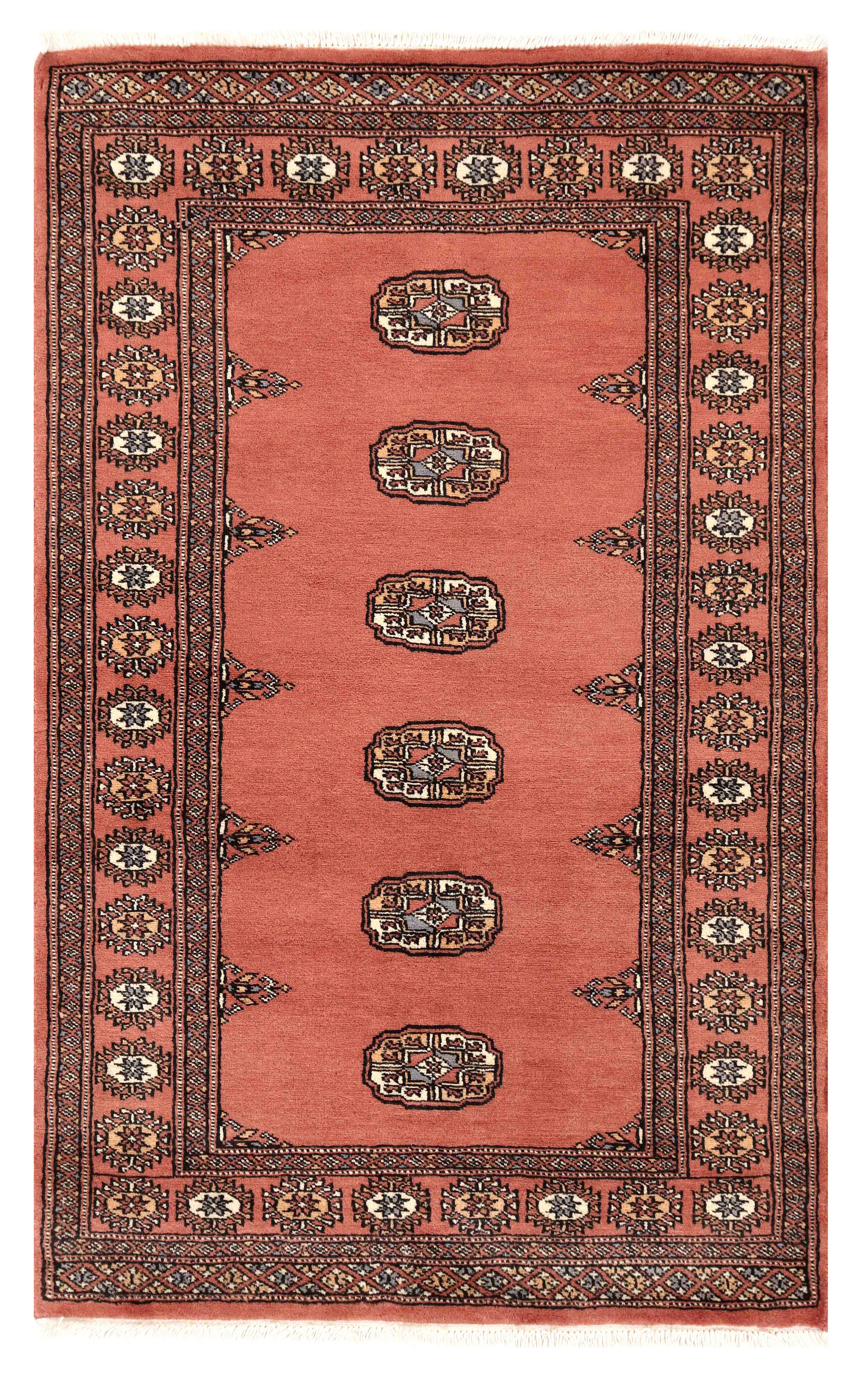 The well-known Bokhara design originates from Uzbekistan, where the nomadic Turkoman tribespeople first took their rugs to be sold. The repetitive octagonal motif or "gul" (Persian for rose) is a characteristic of Bokhara rugs, and today the Pakistani people weave this design in a wide range of colours and sizes.