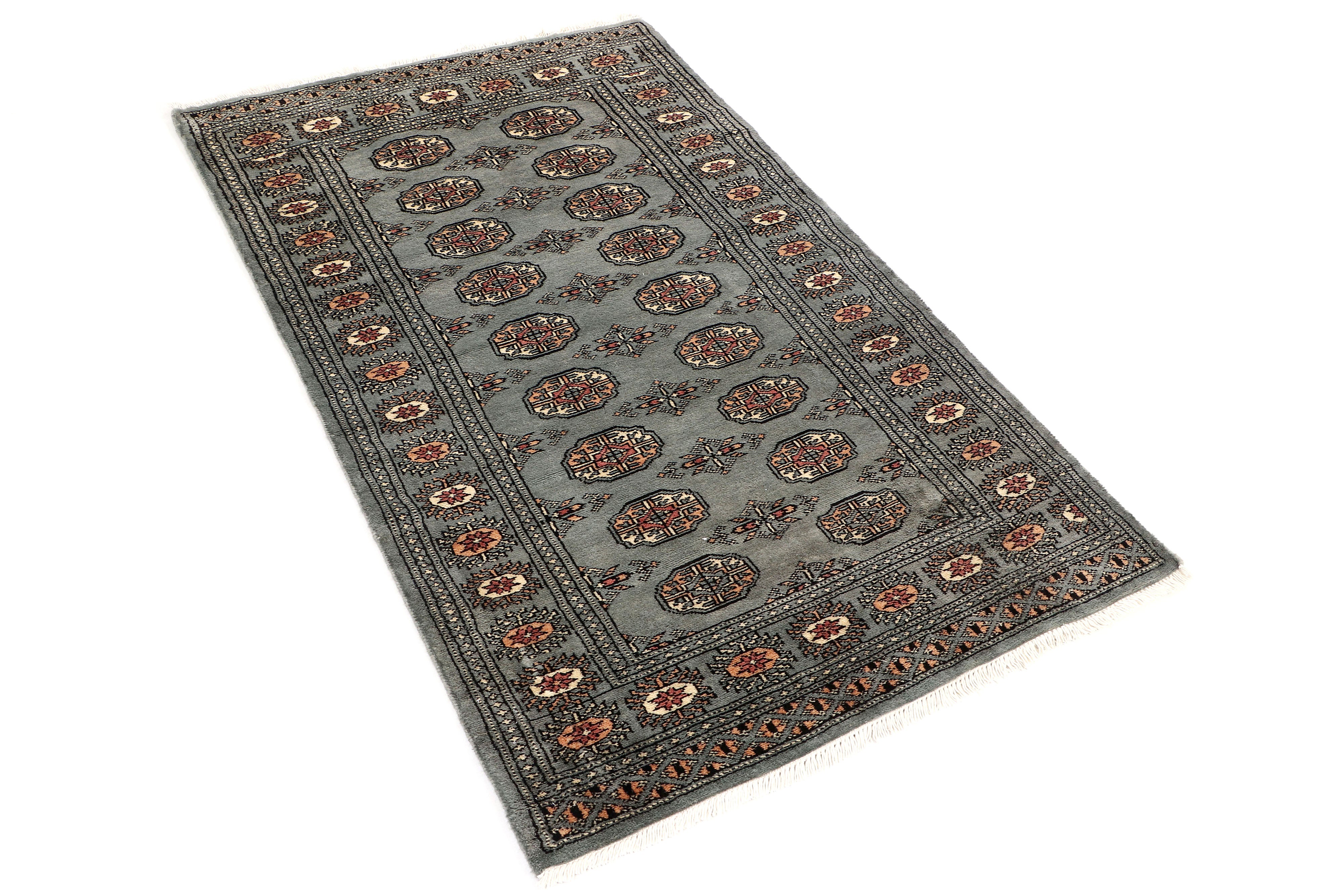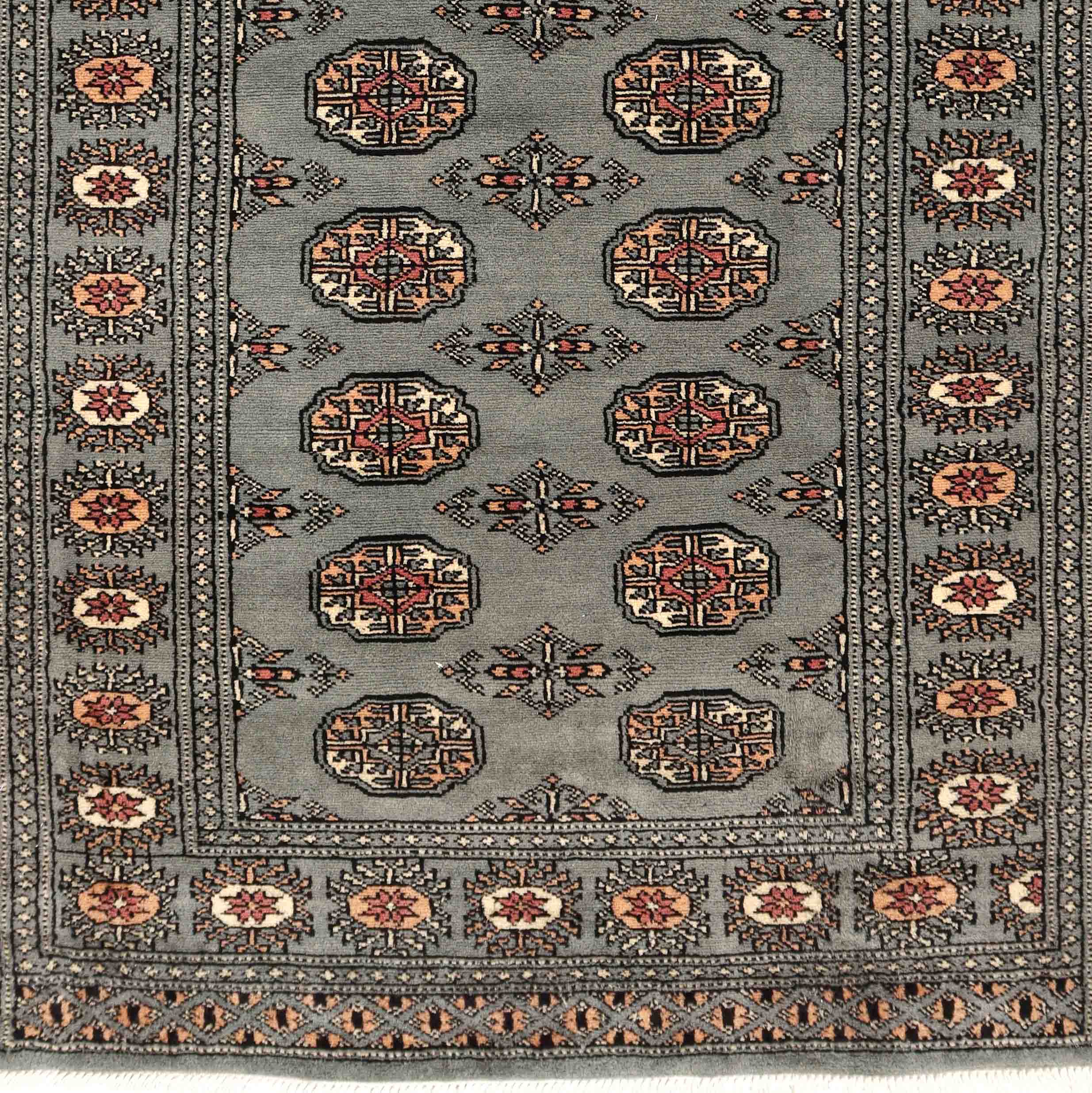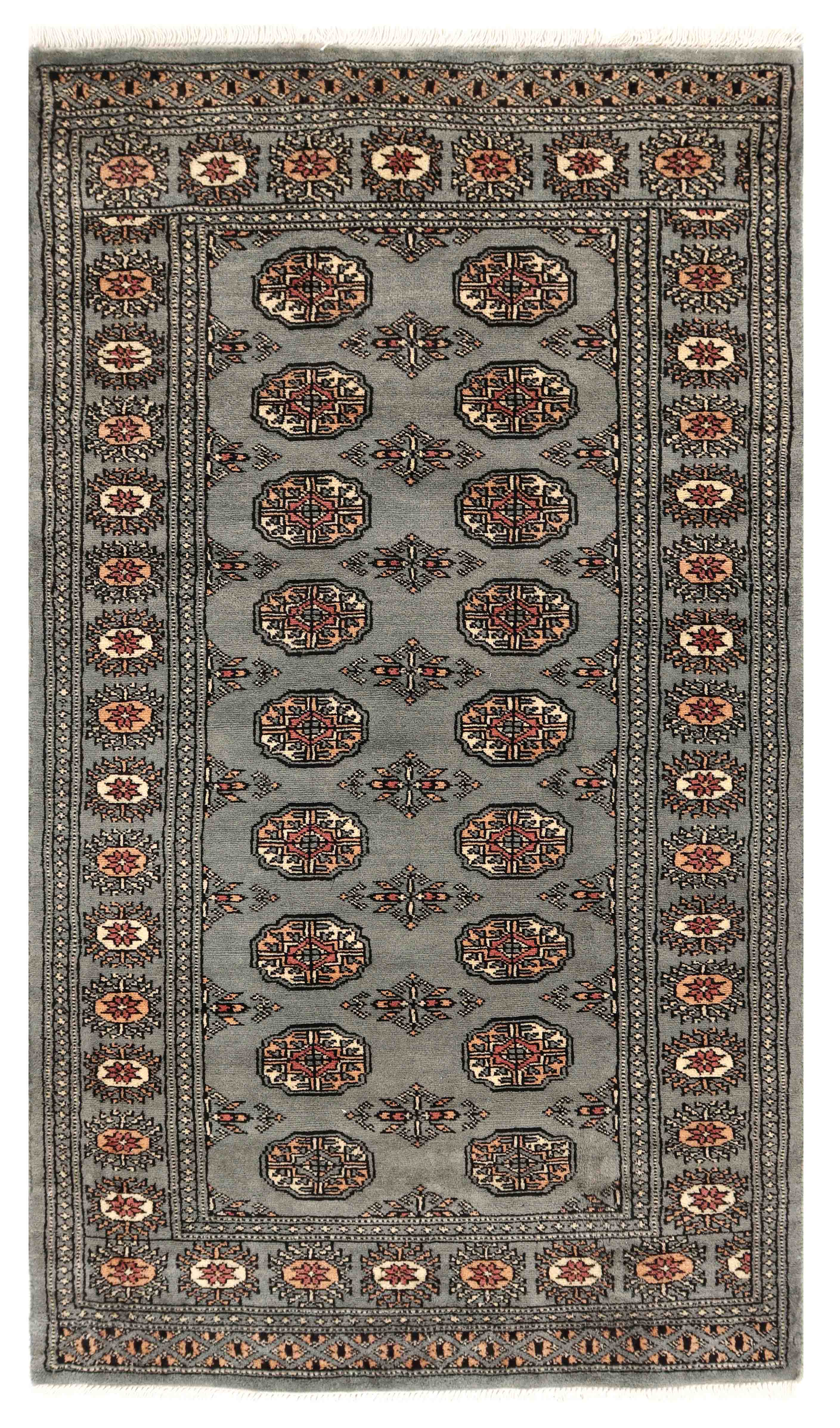 The well-known Bokhara design originates from Uzbekistan, where the nomadic Turkoman tribespeople first took their rugs to be sold. The repetitive octagonal motif or "gul" (Persian for rose) is a characteristic of Bokhara rugs, and today the Pakistani people weave this design in a wide range of colours and sizes.