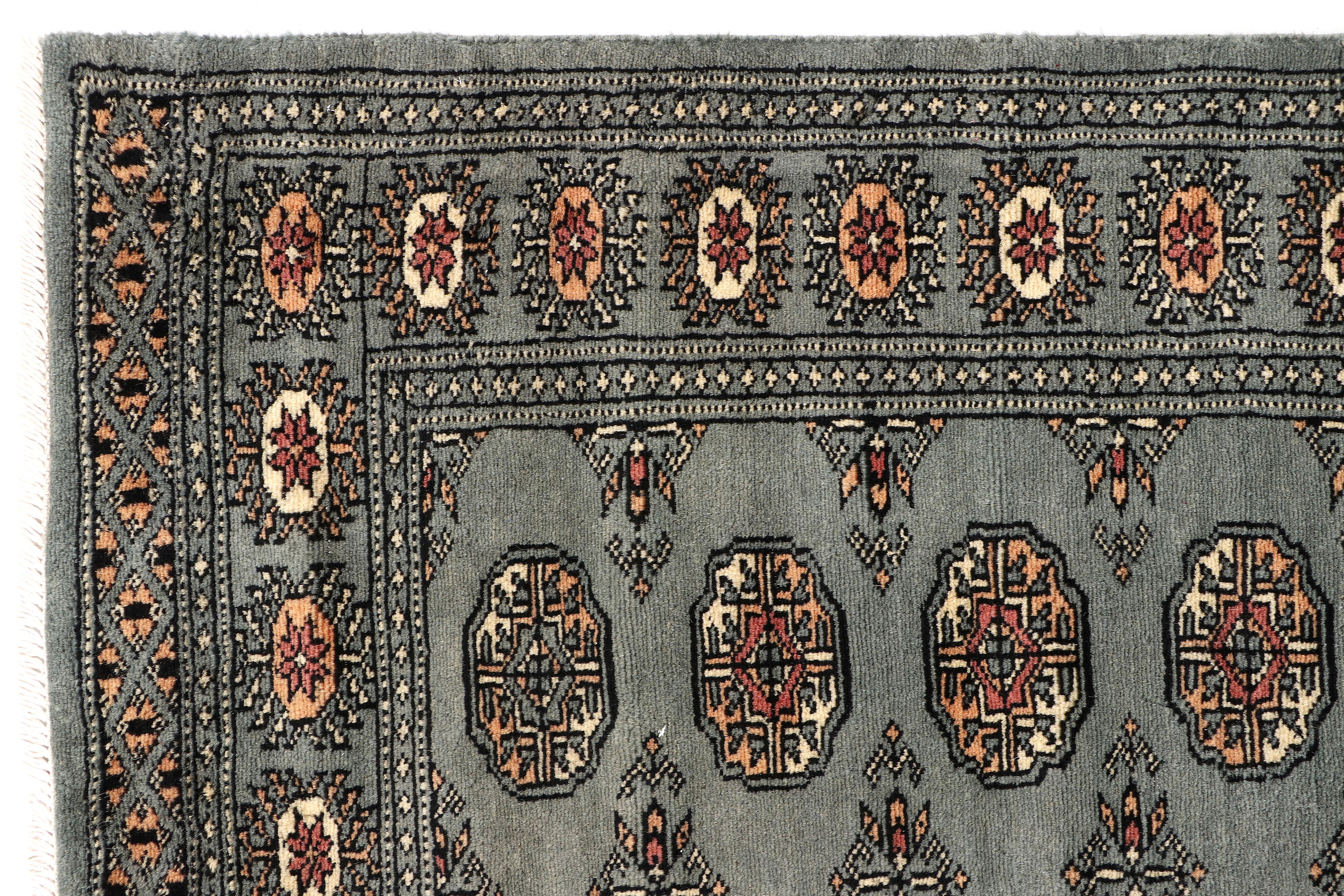 This Pakistan Bokhara rug is finely knotted in a traditional design using lovely, soft, silky wool. The Bokhara rugs are always made with a wool pile, but unfortunately, some people try to pass them off as silk. Handmade Bokhara rugs are incredibly good value.