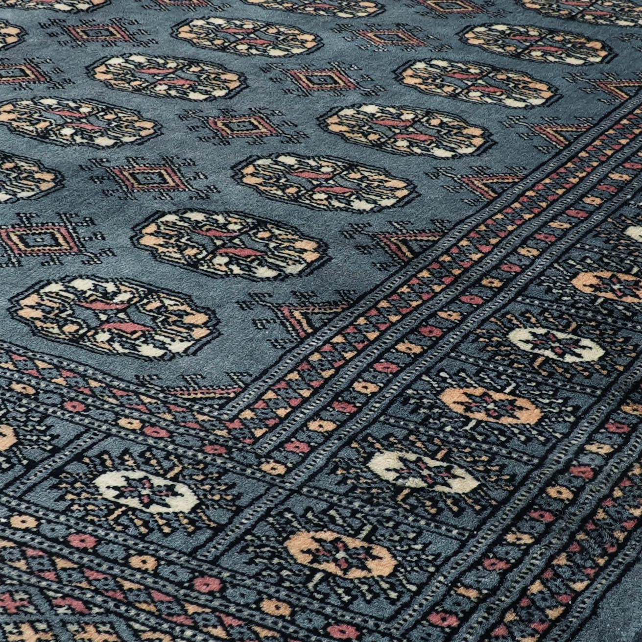 This Pakistan Bokhara rug is finely knotted in a traditional design using lovely, soft, silky wool. The Bokhara rugs are always made with a wool pile, but unfortunately, some people try to pass them off as silk. Handmade Bokhara rugs are incredibly good value.