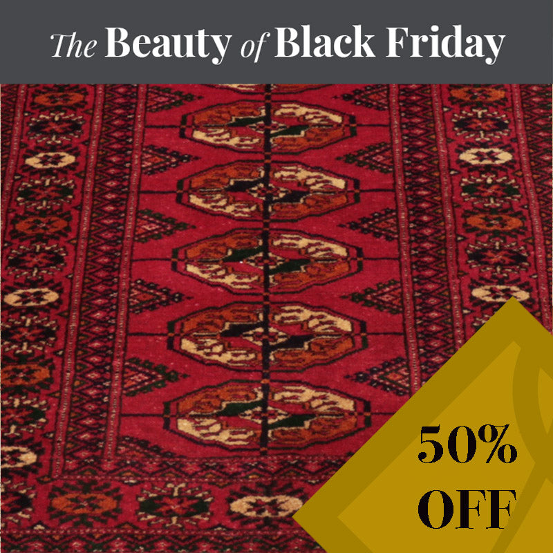 This is a traditional Turkoman Bokhara rug made by Turkoman weavers in and around Bokhara. It is made of 100% wool warp and weft and always has a rich red background, often combined with green, orange, beige, and purple. This is not to be confused with the Pakistan Bokhara, which comes in many different colour backgrounds and is woven onto a white cotton fringe. We recommend the use of an underlay with this product:www.jenningsrugs.co.uk/collections/Foxi-underlay Product size:144 x 66cm (4'9 x 2'2)