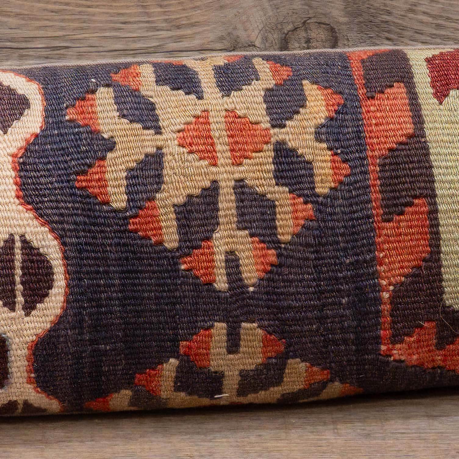 We are fortunate to have these draught excluders on the website; the old kilims are becoming harder to find and quite desirable. This lovely draught excluder is made from a salvaged piece of Turkish Kilim. It is single-faced, with a faux-suede/linen backing and fibre fill. Each draught excluder is unique and not repeatable.