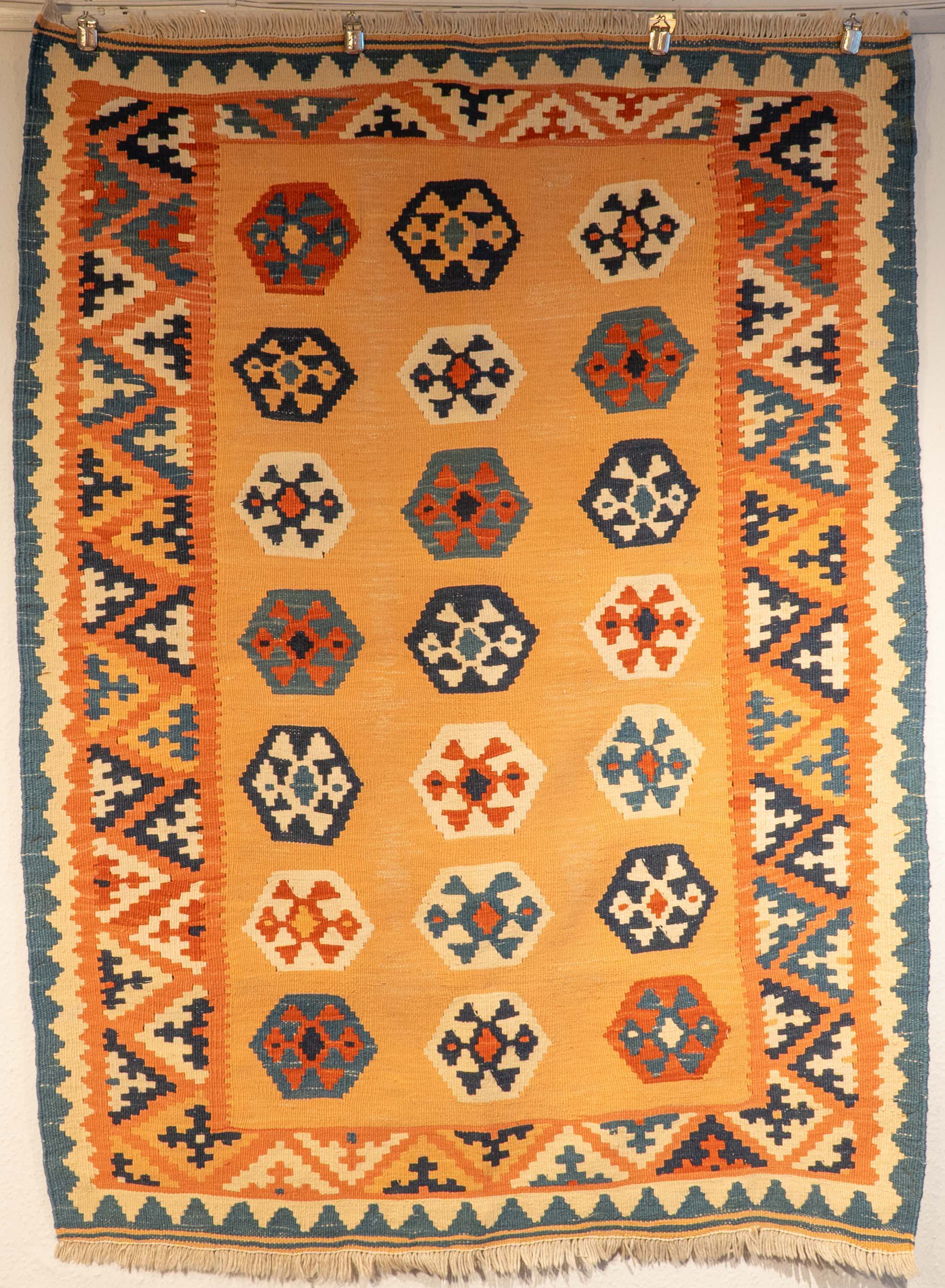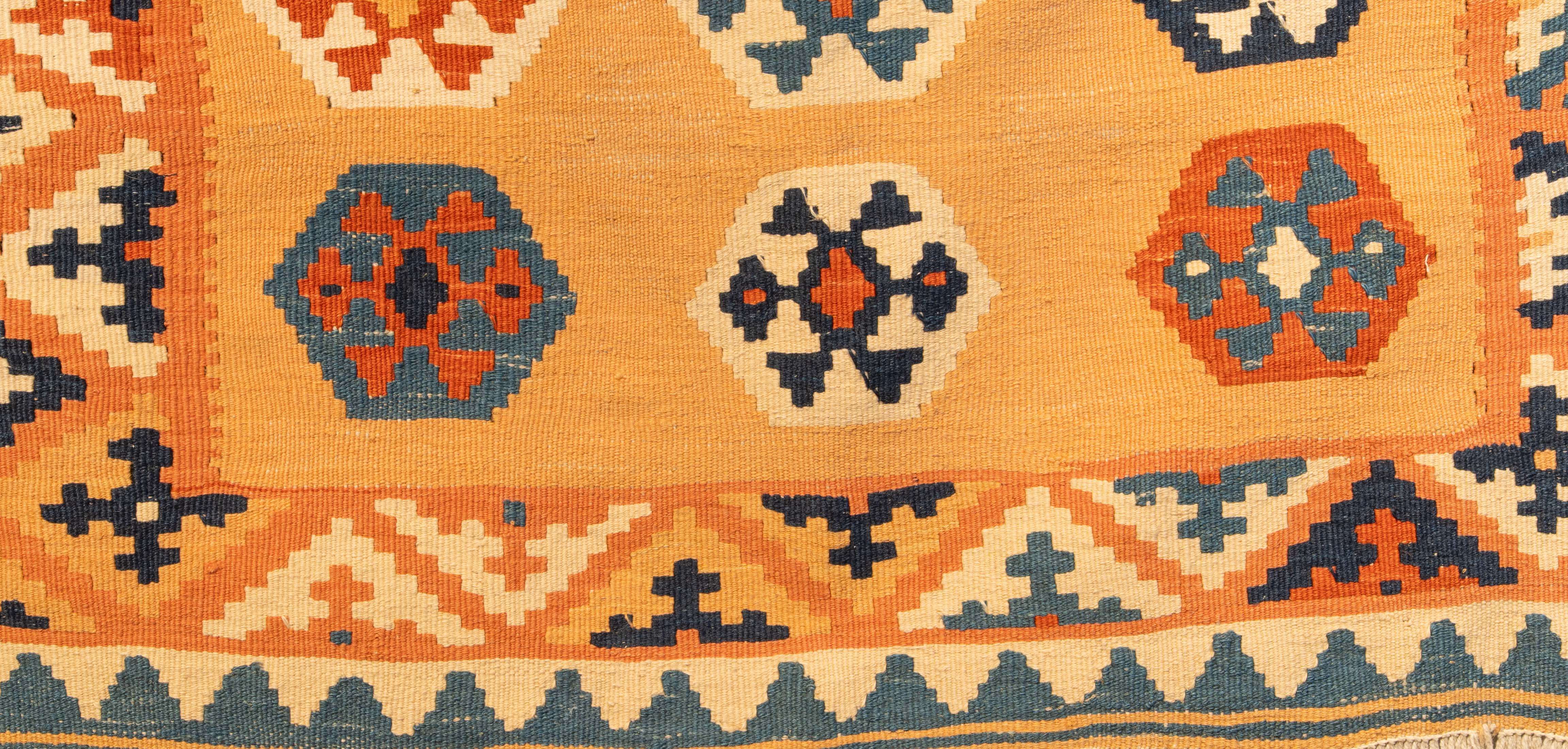 Kilim rugs are both serviceable and practical, offering the owner the advantage of being made from one of the most wonderful natural yarns, wool, and often being completely reversible. Vegetable-dyed wool is a beautiful natural fibre that usually contains high levels of lanolin, making it very practical. Kelim are woven from hand-dyed wool in both the warp and the weft. The patterns produced are often identified by the region where they are made, and the designs are passed down from mother to daughter through generations.