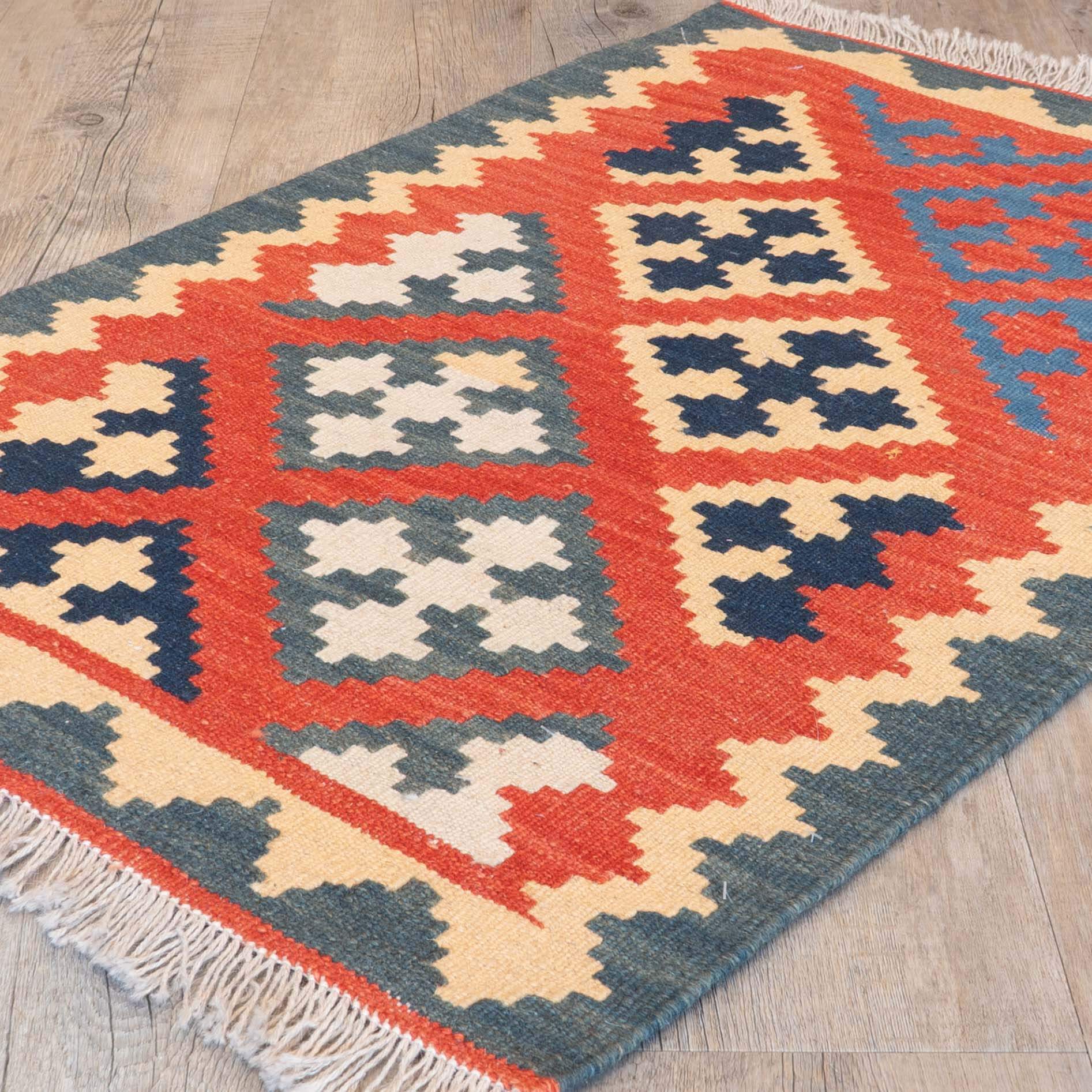 Discover authentic Qashqai craftsmanship in this stunning handwoven kelim. Rich blues, greens, and terracotta tones blend seamlessly across traditional geometric patterns that tell a story of cultural heritage. Crafted entirely from 100% wool, this reversible textile adapts to your décor—flip it to refresh your space instantly. Durable enough for everyday use yet refined enough to become a focal point, it's the perfect choice for those who value genuine artisanal quality and timeless design over mass-produced alternatives.