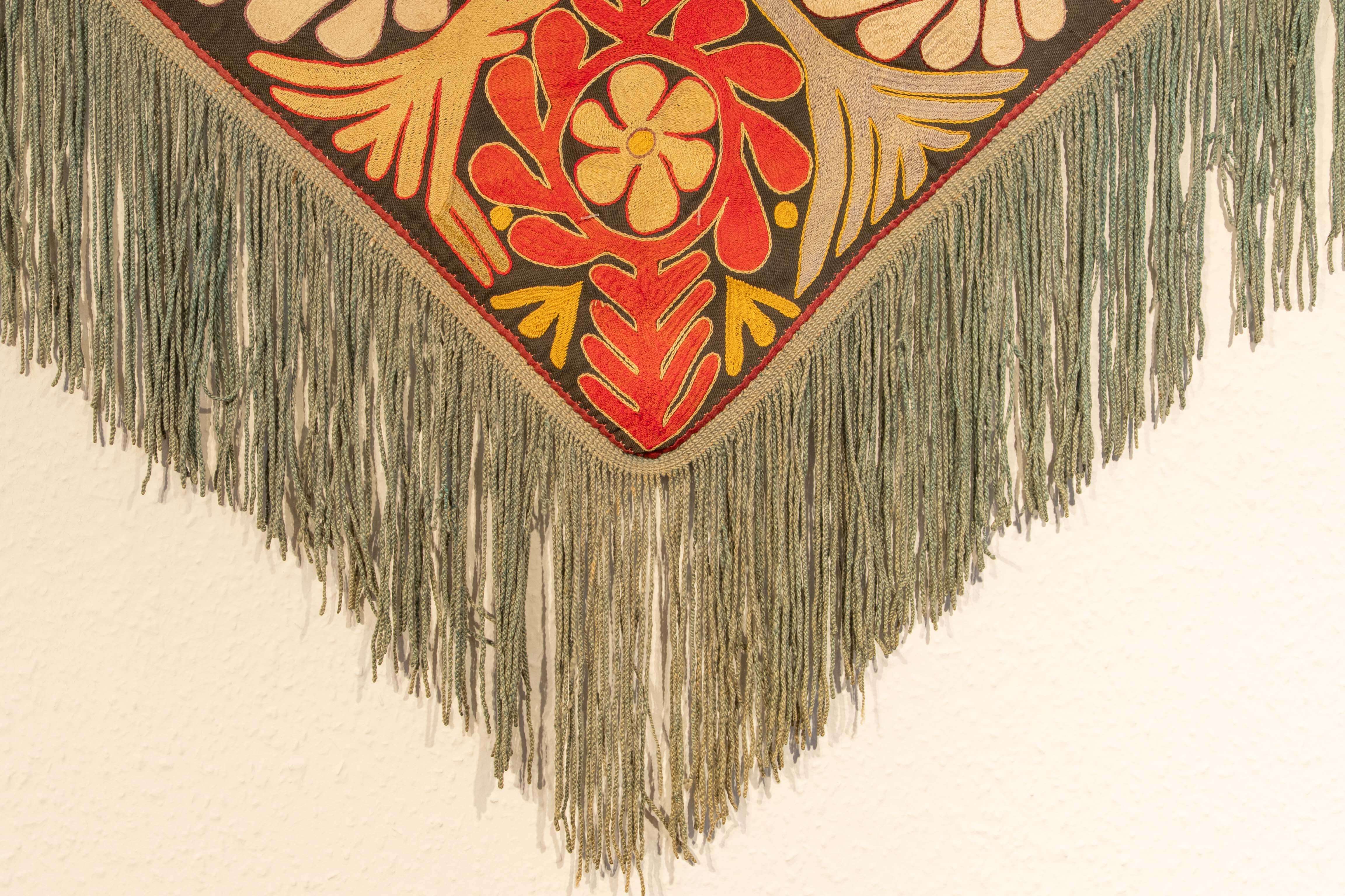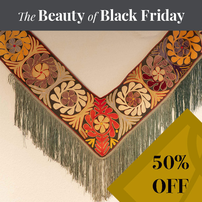 Another jewel from the Jennings archive. Sometimes your heart rules your head, and this is another example we came across: it's hung around Camilla the camel's neck, unseen by many, making the occasional special appearance. This piece of fine decorative silk work would have been created for a special celebration, perhaps a wedding.
